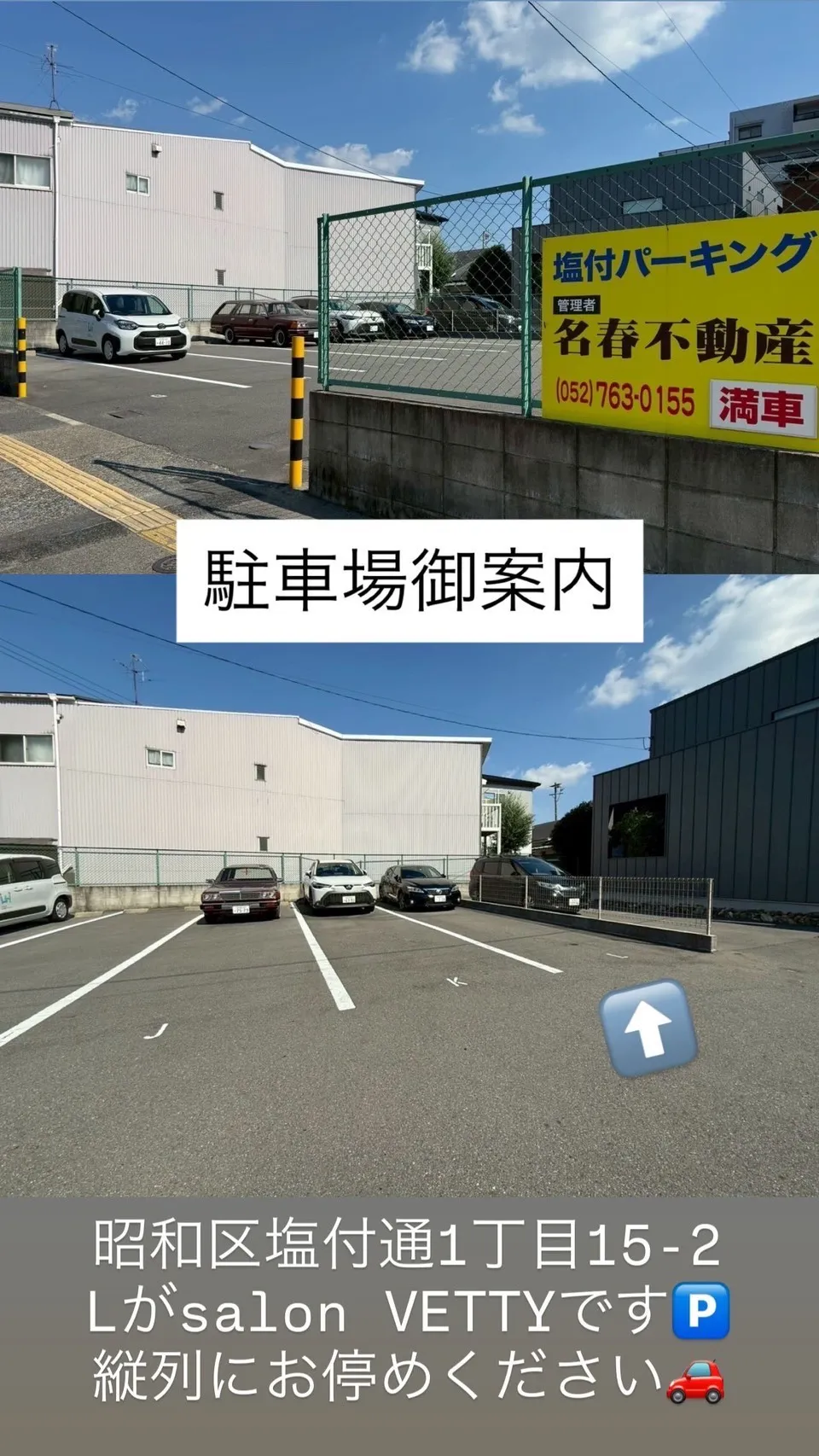 | 駐車場 | 有り 名古屋市昭和区塩付通1丁目15-2 「L」に縦列でお停めください |